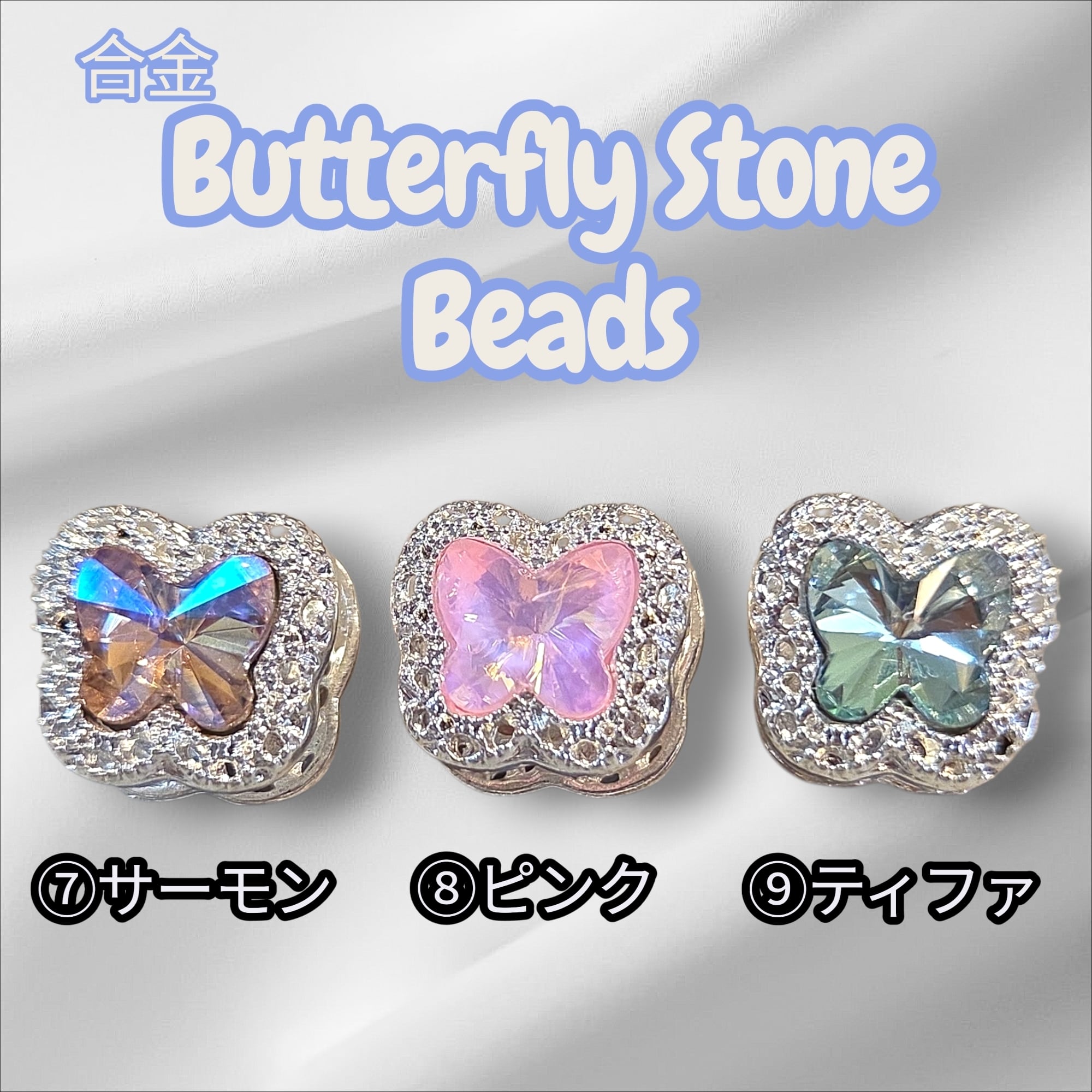 中央のバタフライストーンと周囲の合金が上品に彩られ、アクセサリー作りを一層華やかにしてくれます✨