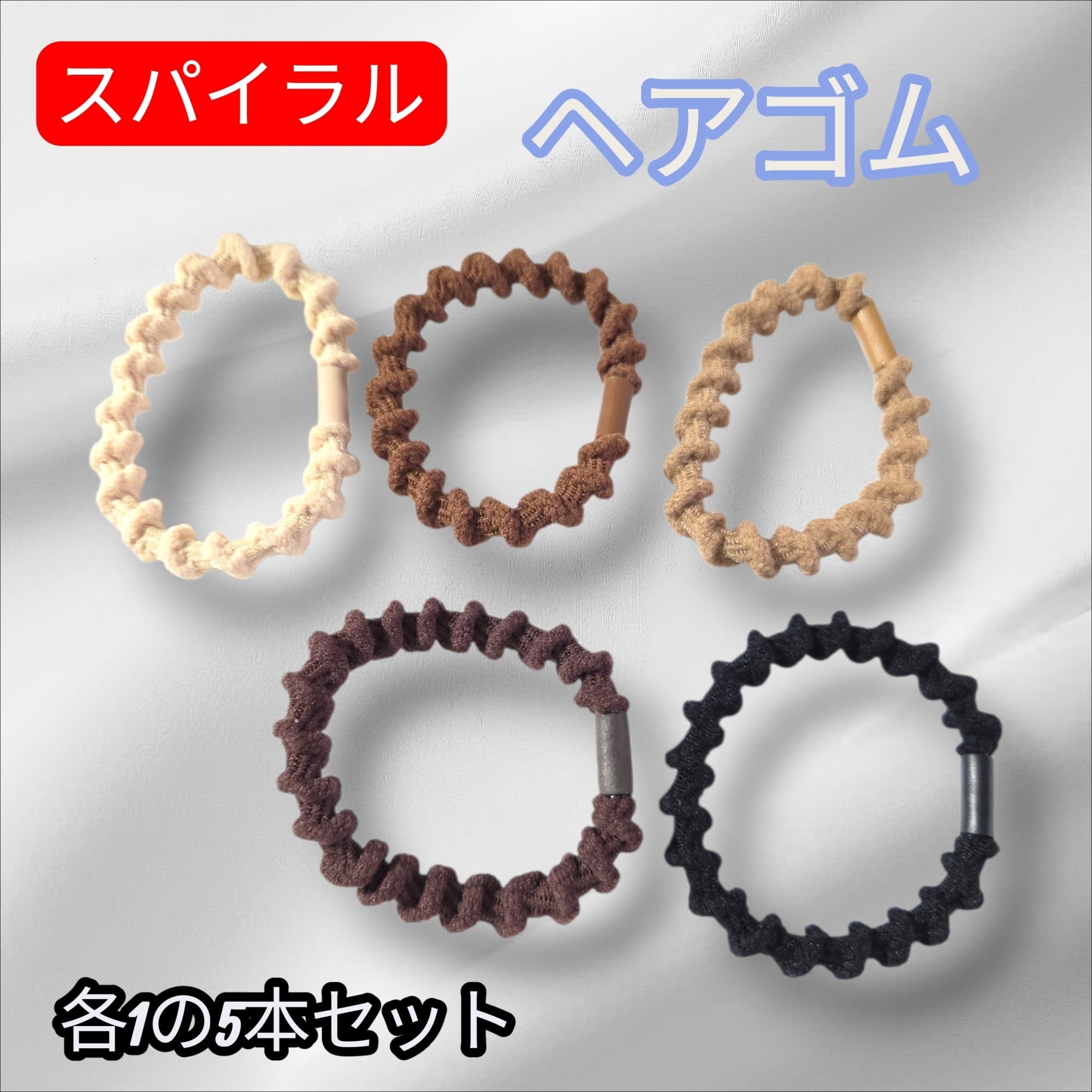 スパイラルタイプのヘアゴム(5本セット)